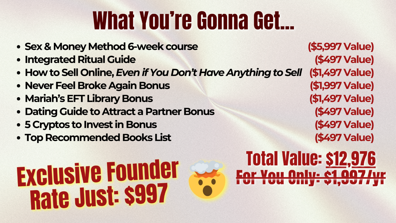 Join Johnathan & Mariah White for this immersive 6-week academy to rewire your energy around sex & money using the exact methods that helped them build a million-dollar “taboo” business.